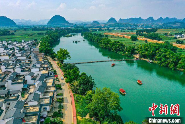 初夏時(shí)節(jié),走進(jìn)卜花村,平坦的村道被長(zhǎng)勢(shì)正盛的甘蔗林包裹,青瓦白墻的農(nóng)家小院錯(cuò)落有致。游客在此,可乘花船而行,或騎行于綠道,感受遠(yuǎn)山如黛,近水潺潺;亦可參與戶外稻田研學(xué),探秘壯族古法紅糖制作技藝,體驗(yàn)水上漂流等互動(dòng)項(xiàng)目;還可坐在鮮花燦爛的小院里,靜享石板路、竹籬笆間透露出的鄉(xiāng)野韻味。