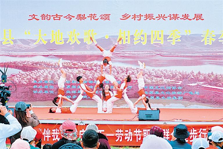 4月19日至21日,由文化和旅游部公共服務(wù)司主辦、自治區(qū)文化和旅游廳及中國文化館協(xié)會承辦、海原縣協(xié)辦的“大地歡歌·相約四季”春季村晚成果展示活動,在該縣關(guān)橋鄉(xiāng)方堡村梨花小鎮(zhèn)火熱舉辦。繁花綻放的數(shù)千畝百年梨園中,歌舞、魔術(shù)、戲曲、雜技等文藝表演輪番上陣、亮點(diǎn)紛呈;海原特色牛雜、燒烤、章魚小丸子、烤馕、手抓餅、肉夾饃、手工洋芋擦擦等鄉(xiāng)味濃郁的特色美食讓人回味無窮。剪紙、刺繡等非遺國潮集市人頭攢動,漢服游園者絡(luò)繹不絕,“璀璨梨園”篝火晚會更是讓游客流連忘返。