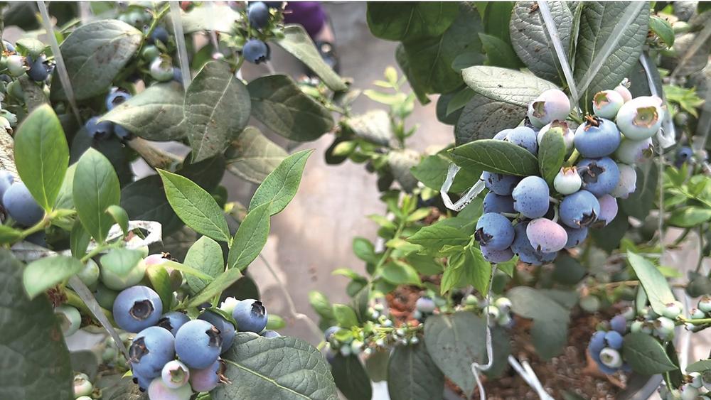 走進藍莓大棚,記者看到成片的藍莓樹長勢蔥郁,一顆顆飽滿圓潤、色澤鮮亮的藍莓果呈藍紫色,被一層薄薄的糖霜包裹著,在陽光和綠葉的映襯下更顯誘人可愛。
