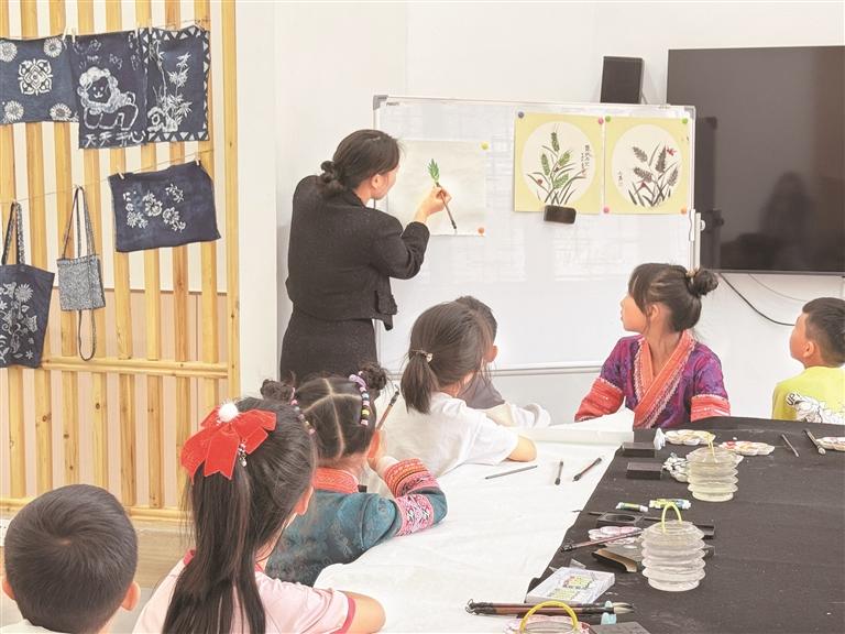 與此同時,在省文聯(lián)的統(tǒng)籌推動下,繪畫與書法課也逐步開班?!捌渲?,書法課深受家長們的青睞。”黃德泉說,“蒲公英”少兒藝術成長計劃目前共開設6個班次,分別為尤克里里、吉他、蘆笙、硬筆書法、毛筆書法、美術班,每個班每周上課時長不低于一個半小時,免費向三寶街道適齡兒童開放。