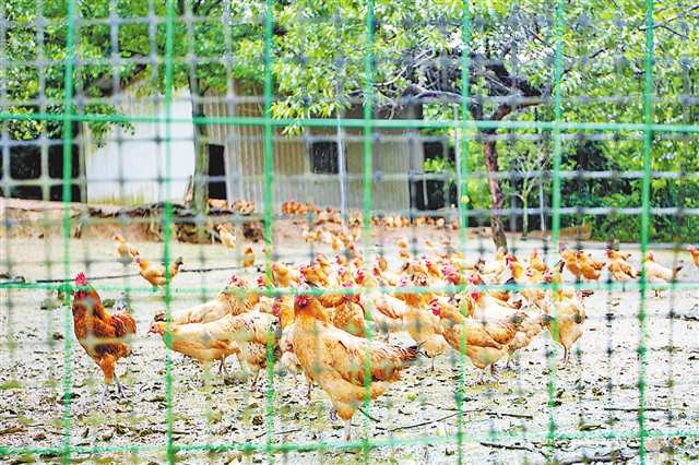 6月28日,秀山縣一養(yǎng)殖基地的秀山雞在空地上悠閑地散步 記者 尹詩語 攝