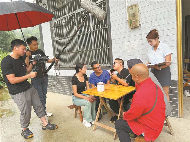 “爆笑巫溪”團隊在巫溪縣文峰鎮(zhèn)進行短視頻拍攝(受訪者供圖)