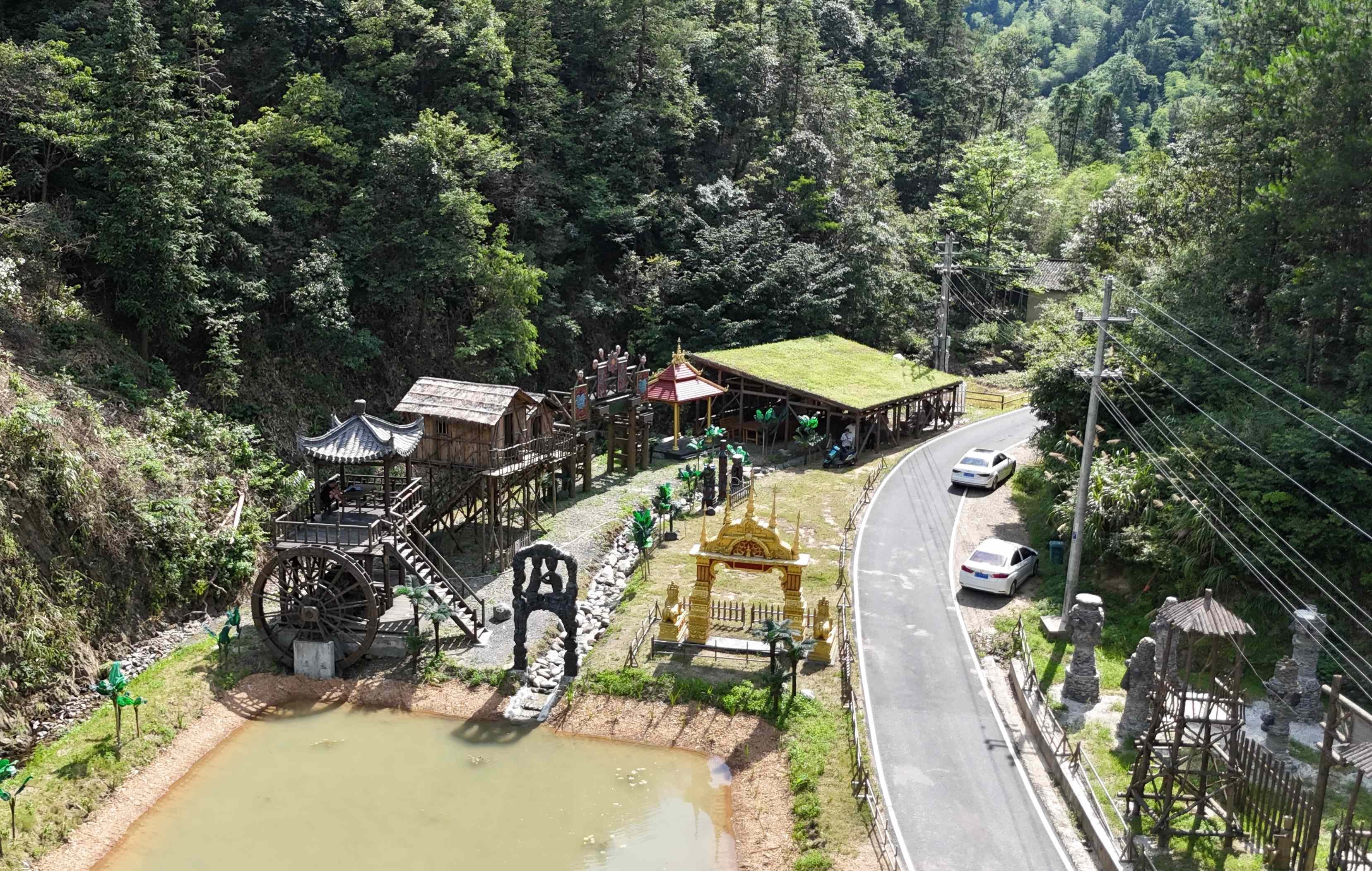 走進(jìn)紅光村的方坑嶺強(qiáng)鄉(xiāng)富村影視基地,東南亞風(fēng)格建筑和古代宮廷場景仿佛讓人穿越。在這里,不到一年的時(shí)間已經(jīng)拍了4部電影和8部短劇,小山村儼然成了“劇工廠”。