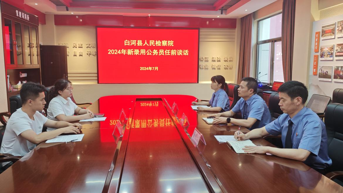 為使新進(jìn)干警盡快轉(zhuǎn)變角色,適應(yīng)新環(huán)境,增強(qiáng)檢察履職使命感和責(zé)任感,7月16日,陜西省安康市白河縣人民檢察院召開2024年新入職公務(wù)員任前談話會(huì),2名新錄用人員從檢之路就此啟航。
