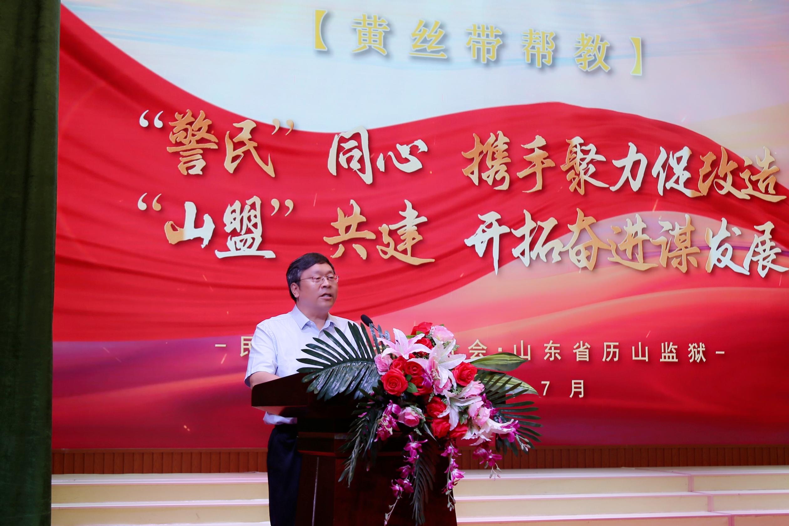 黃向榮在致辭中介紹了全省監(jiān)獄系統(tǒng)“黃絲帶幫教”整體工作開(kāi)展情況,指出歷山監(jiān)獄深入探索社會(huì)幫教新路徑,聯(lián)合山東民盟各級(jí)組織開(kāi)展罪犯困難幫扶、心理疏導(dǎo)、醫(yī)療救護(hù)、技能培訓(xùn)、就業(yè)指導(dǎo)、法律援助等幫教活動(dòng),進(jìn)一步提升了罪犯回歸社會(huì)的信心和能力。下一步要繼續(xù)踐行改造宗旨,向社會(huì)輸出更多合格守法公民,奮力推進(jìn)監(jiān)獄工作高質(zhì)量發(fā)展走在前、開(kāi)新局。