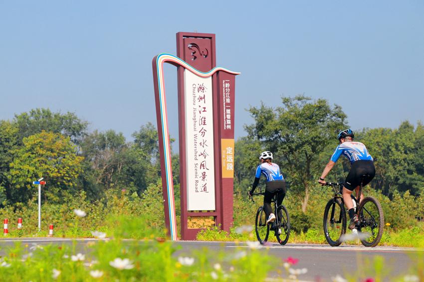 騎行愛好者在江淮分水嶺風(fēng)景道定遠(yuǎn)段騎行(滁州市文旅局供圖)