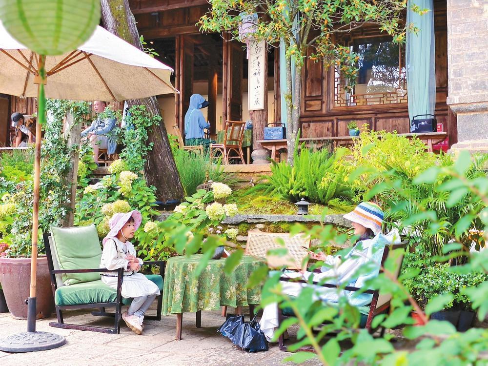 馬蹄“噠噠”輕響,游客騎馬穿梭于蜿蜒古道之上,恍若穿越古今;“有風(fēng)小院”門口,拍照的游客絡(luò)繹不絕,用鏡頭記錄旅行的美好;馬店陳蒼號茶院中,三五游客品一壺好茶,盡享寧靜與和諧……初秋,云南省大理市太和街道劉官廠村鳳陽邑旅游熱度不減。