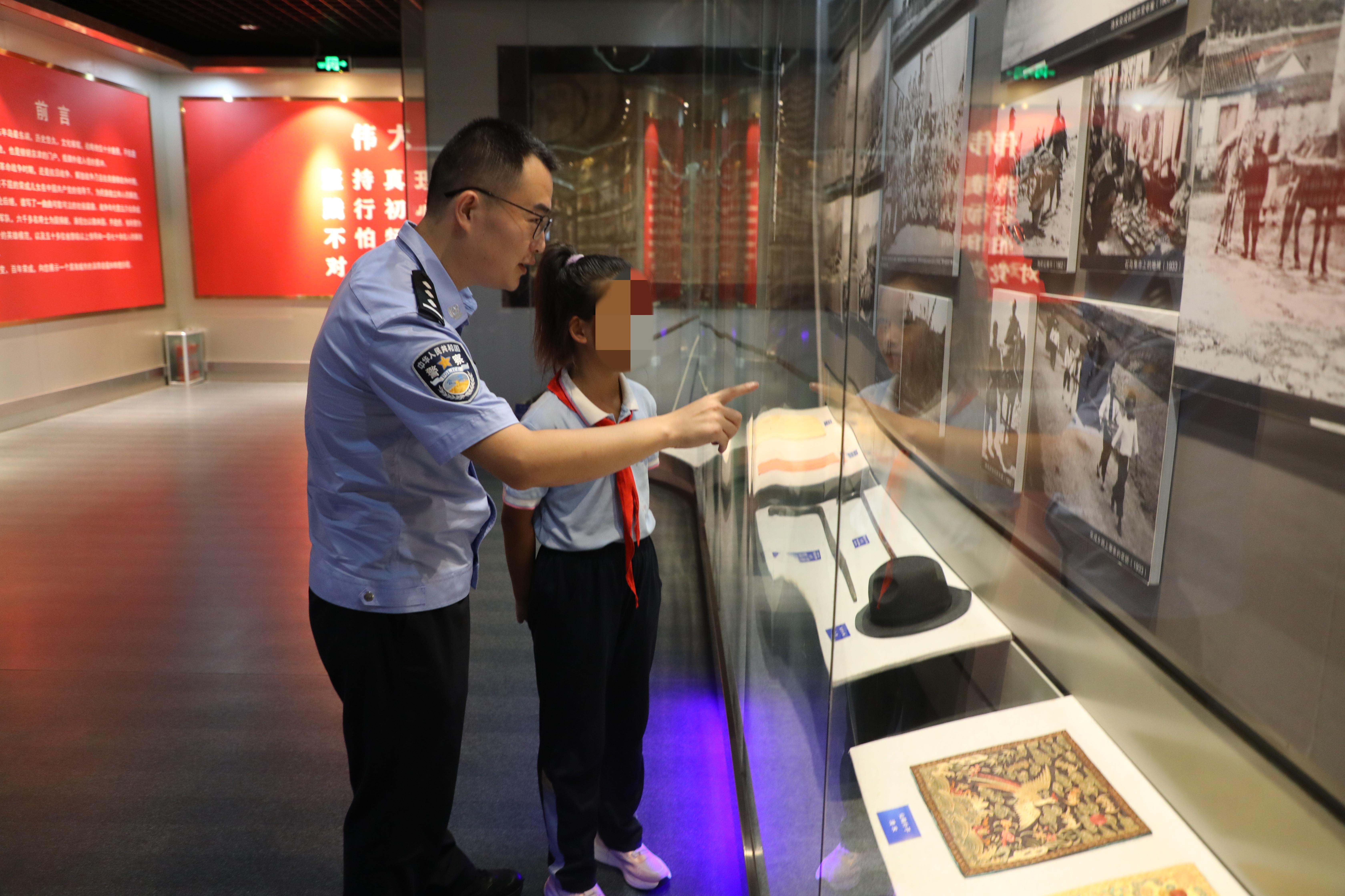 活動(dòng)中,該站民警攜手駐地小學(xué)學(xué)生一起走進(jìn)榮成市博物館“世紀(jì)榮成”展館,共同了解榮成從古至今的發(fā)展歷程,傳承紅色基因,弘揚(yáng)愛國精神。整個(gè)展館共展出700多張珍貴照片、300多件珍貴文物資料,展示了榮成自辛亥革命以來百年社會(huì)進(jìn)程、典型人物及榮成兒女取得的輝煌成就。通過一幅幅的歷史照片和抗戰(zhàn)時(shí)期歷史實(shí)物,生動(dòng)再現(xiàn)了抗戰(zhàn)時(shí)期,無數(shù)英勇無畏的中華兒女,為了民族獨(dú)立和人民解放,浴血奮戰(zhàn)、前赴后繼的壯烈事跡。跟隨著解說員的講解,大家仿佛被帶入到那段艱苦卓絕、血雨腥風(fēng)的抗戰(zhàn)歲月,看到了戰(zhàn)爭背后鮮為人知的感人故事,心靈受到了洗禮,思想也得到了升華。