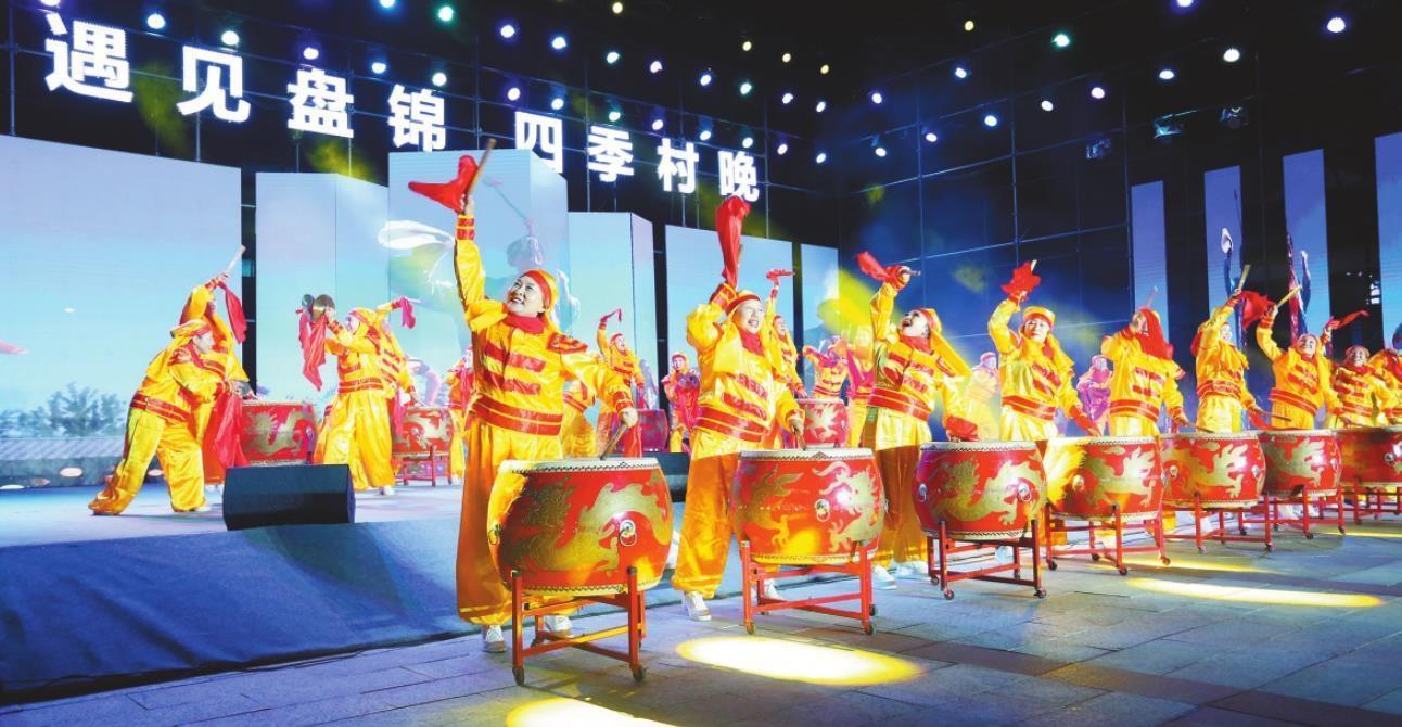 “大地歡歌·盤錦市秋季村晚”開場的大鼓鏗鏘有力,承載著鄉(xiāng)音、傳遞著鄉(xiāng)樂(受訪者供圖)