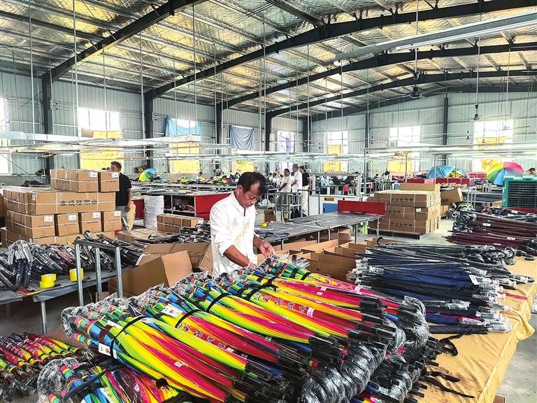 在此基礎(chǔ)上,腰店鎮(zhèn)趁勢而上,以商招商、以傘引傘,先后招引福建、浙江、湖南等地上下游5家企業(yè)入駐,延鏈補鏈、聚“傘”成群,實現(xiàn)了集聚連鎖效應(yīng)。