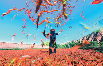 青海省海東市循化撒拉族自治縣清水鄉(xiāng)多灘地、谷地,全年日照充足,出產(chǎn)的線辣椒色澤鮮紅,“香而不辣,口味獨(dú)特”,受到大眾喜愛。正是豐收時節(jié),清水鄉(xiāng)家家戶戶在房前屋后晾曬線辣椒,構(gòu)成一幅喜人的秋日圖景。