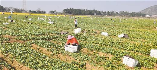 高路村供港蔬菜基地里,每天都有三四十名工人采摘時令蔬菜上市銷售 記者 王克礎 攝