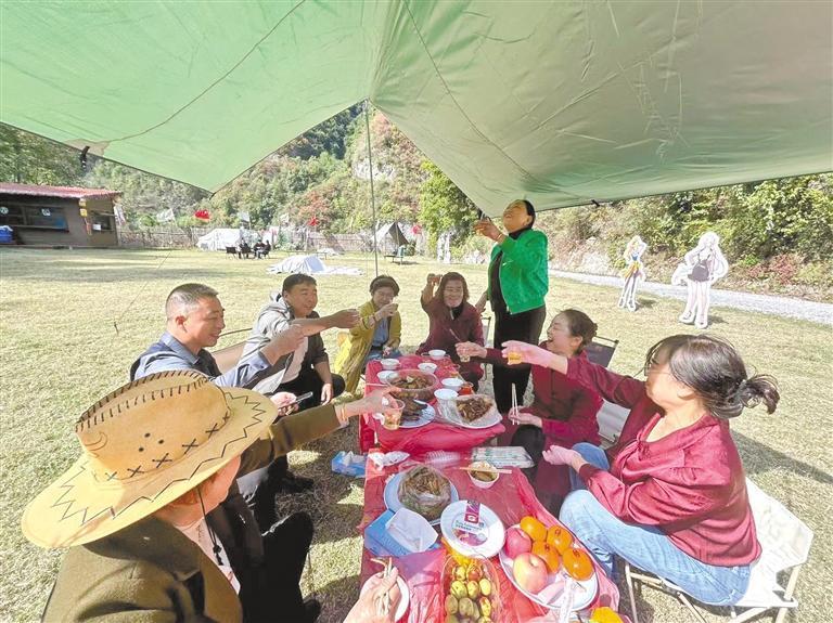 11月9日,游客在旬陽(yáng)市甘溪鎮(zhèn)梯巖村神隱谷露營(yíng)基地露營(yíng) 記者 董劍南 攝