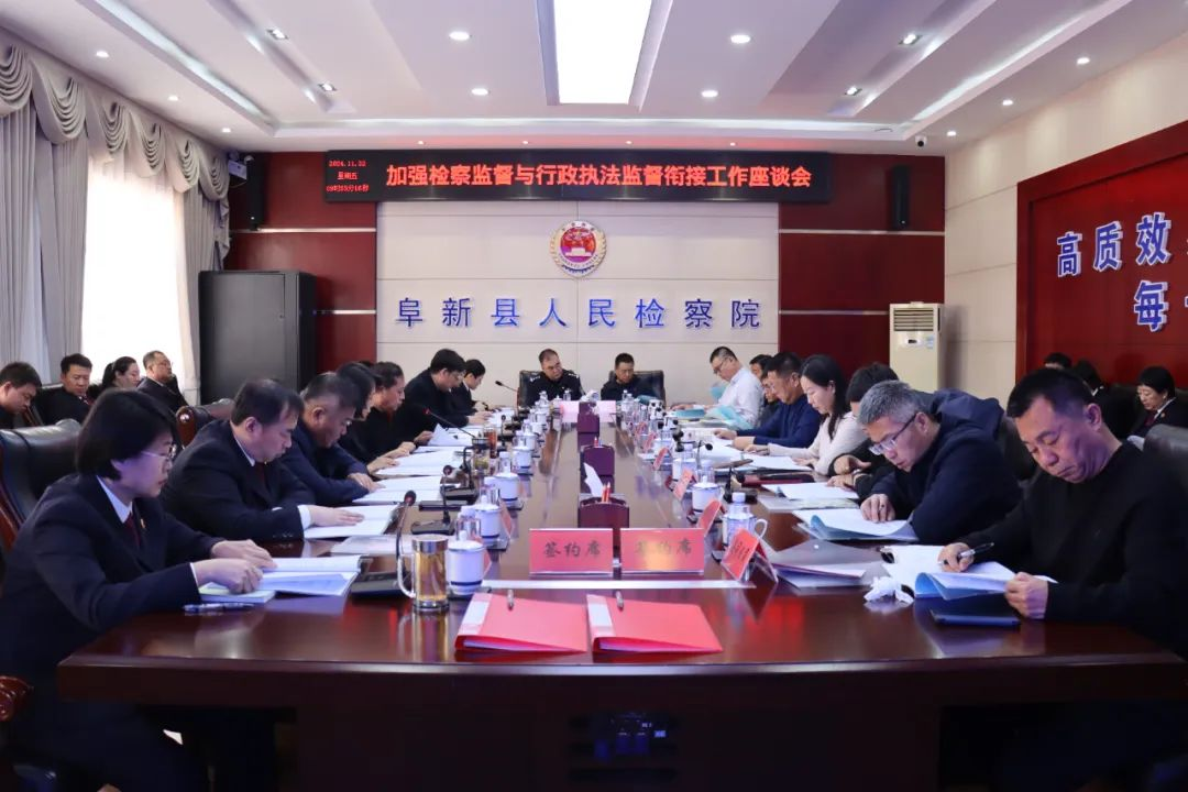 為全面落實(shí)《中共中央關(guān)于加強(qiáng)新時(shí)代檢察機(jī)關(guān)法律監(jiān)督工作的實(shí)施意見(jiàn)》和最高檢《關(guān)于推進(jìn)行刑雙向銜接和行政違法行為監(jiān)督構(gòu)建檢察監(jiān)督與行政執(zhí)法銜接制度的意見(jiàn)》,有效推動(dòng)檢察監(jiān)督與行政執(zhí)法監(jiān)督的銜接配合,助推法治政府建設(shè),11月22日,遼寧省阜新縣人民檢察院與阜新縣司法局聯(lián)合召開(kāi)了加強(qiáng)檢察監(jiān)督與行政執(zhí)法監(jiān)督銜接工作座談會(huì)??h委常委、副縣長(zhǎng)張文遠(yuǎn),縣委常委、政法委書(shū)記王立靖參加會(huì)議并講話??h公安局、縣司法局、縣工業(yè)和信息化局、縣人力資源和社會(huì)保障局、縣住房和城鄉(xiāng)建設(shè)局、縣水利局、縣應(yīng)急管理局、縣林業(yè)和草原局等12家行政單位參加了座談會(huì)。市人民檢察院、縣紀(jì)委監(jiān)委、縣人民法院派員參加了會(huì)議。
