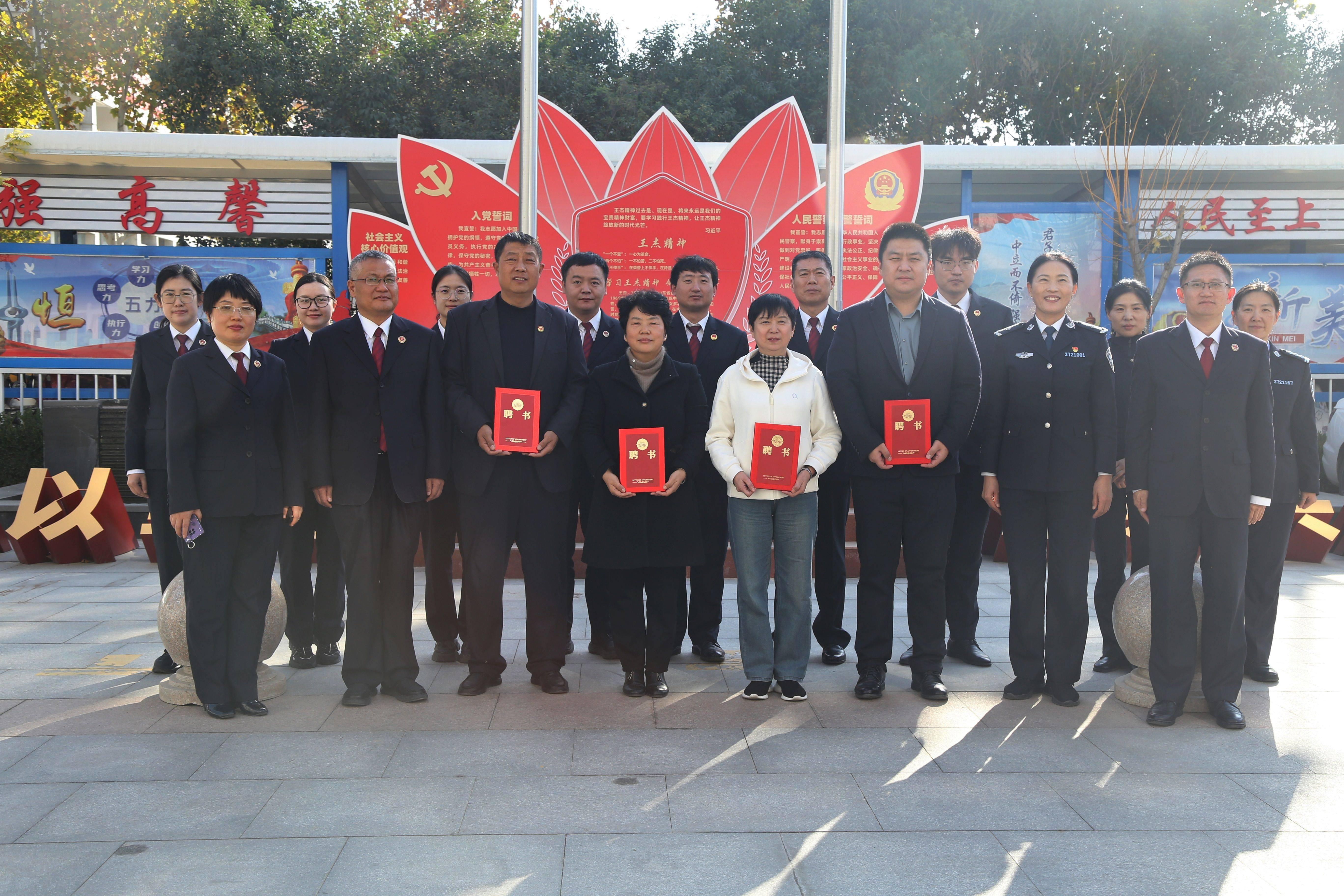 歷山監(jiān)獄黨委書記、監(jiān)獄長趙鴻雁向4名執(zhí)法監(jiān)督員頒發(fā)聘任證書