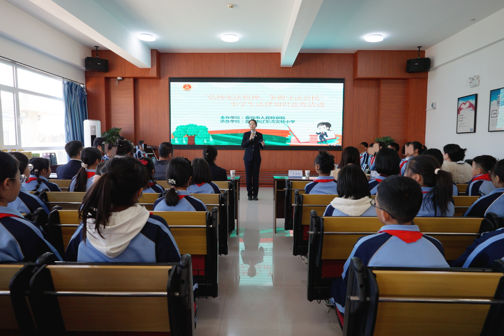 為弘揚(yáng)憲法精神,進(jìn)一步提升未成年人普法質(zhì)效,推動(dòng)檢察官擔(dān)任法治副校長(zhǎng)“實(shí)職化”履職,在第11個(gè)憲法日來(lái)臨之際,盤錦市人民檢察院的未檢干警們走進(jìn)遼東灣實(shí)驗(yàn)小學(xué),與學(xué)校聯(lián)合開展了小學(xué)生法律知識(shí)競(jìng)賽活動(dòng)。競(jìng)賽共有“表情猜詞”“動(dòng)動(dòng)腦筋來(lái)擴(kuò)句”和“知識(shí)競(jìng)答”三個(gè)環(huán)節(jié),形式豐富多彩,內(nèi)容涵蓋了《中華人民共和國(guó)憲法》《中華人民共和國(guó)未成年人保護(hù)法》《中華人民共和國(guó)預(yù)防未成年人犯罪法》《中華人民共和國(guó)刑法》《中華人民共和國(guó)民法典》等多方面與孩子們的生活學(xué)習(xí)息息相關(guān)的法律知識(shí)。賽前檢察干警還對(duì)參賽選手們進(jìn)行了專業(yè)輔導(dǎo)。