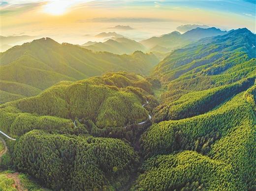 在東蘭縣泗孟鄉(xiāng)欽能村,連綿的青山在朝霞映照下顯得格外壯觀 周恩革 攝