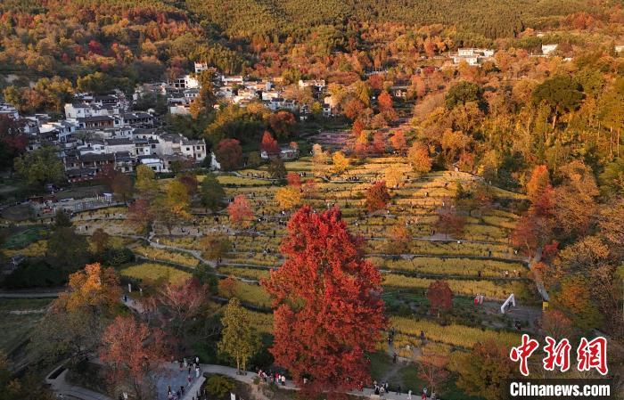 2024年11月11日,初冬時(shí)節(jié),黃山市黟縣塔川村景色斑斕。(無(wú)人機(jī)照片)記者 韓蘇原 攝