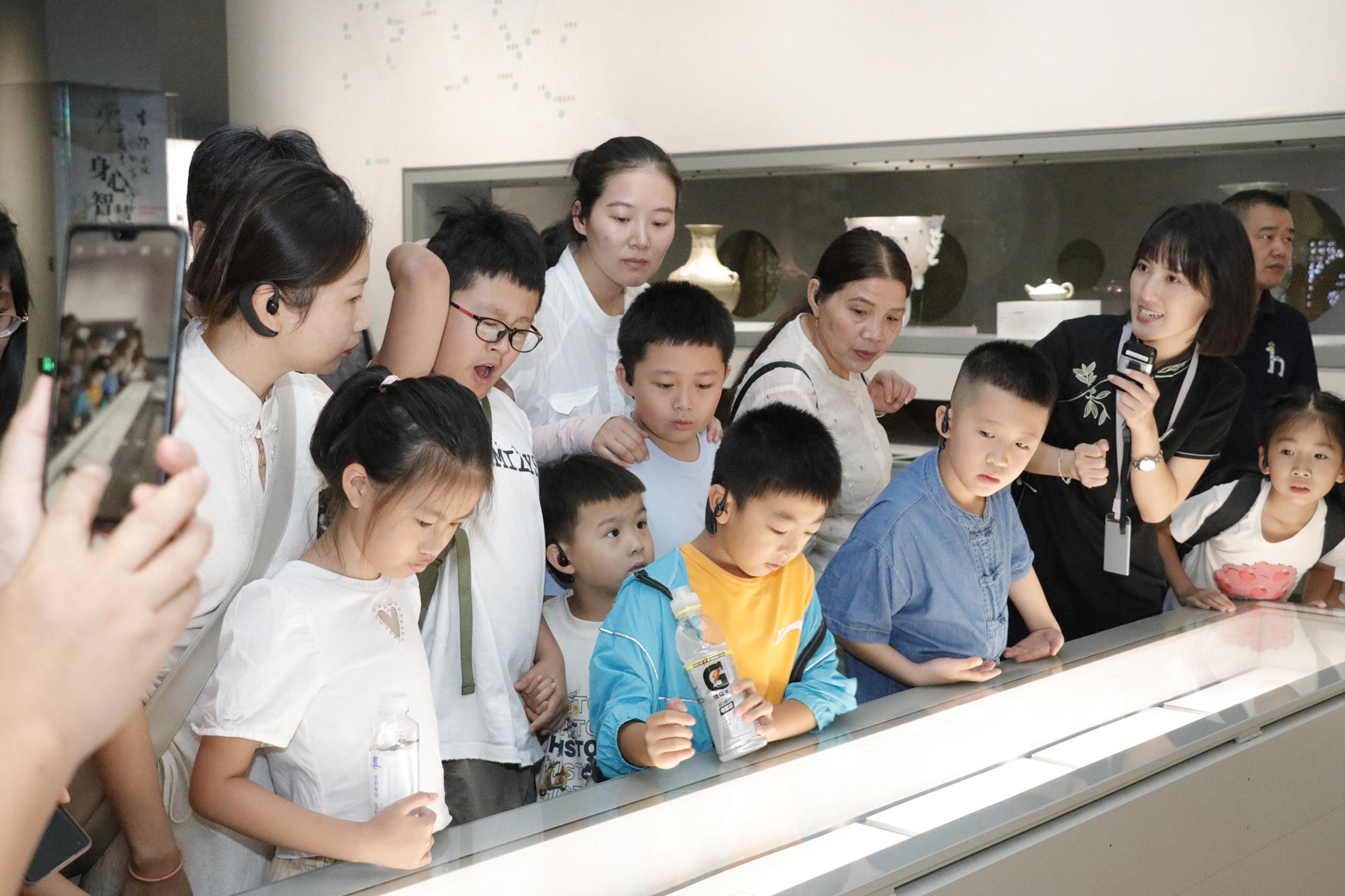石小倩(右二)帶領(lǐng)溪里村的群眾參觀浙江省非遺館