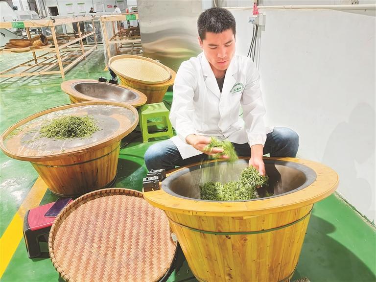 現(xiàn)在,許大全忙的是茶園的規(guī)范化管理、標(biāo)準(zhǔn)化制茶以及銷售渠道的搭建。目前,標(biāo)準(zhǔn)化茶葉加工廠房已建成投產(chǎn),3條生產(chǎn)線為茶園生產(chǎn)加工提供了保障。
