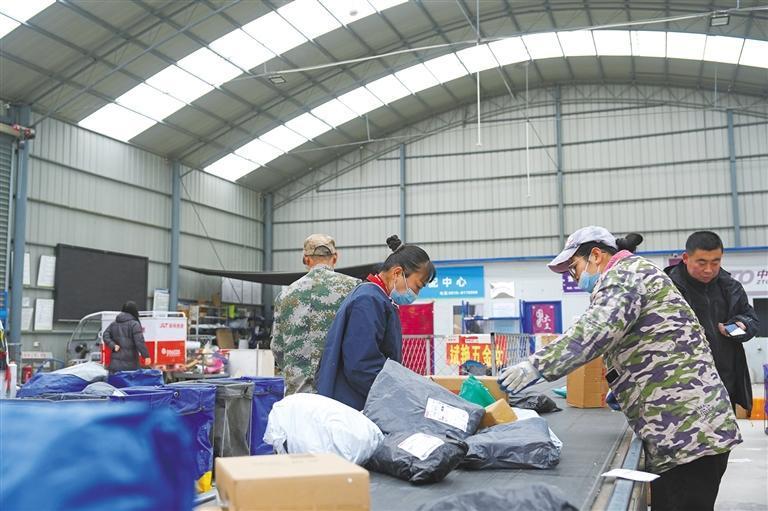 工作人員在菜鳥(niǎo)鄉(xiāng)村農(nóng)產(chǎn)品上行中心和共配中心綜合體分揀包裹(資料照片)通訊員 薛凱岳 攝