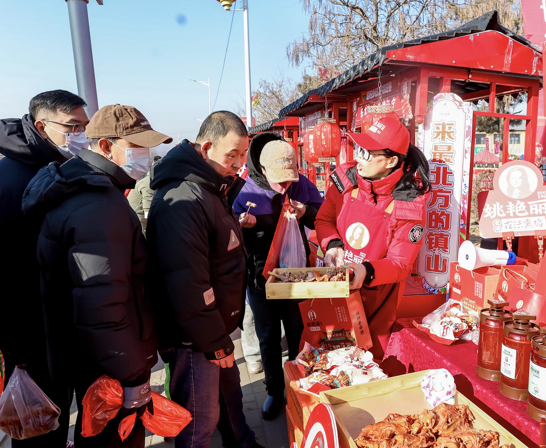 春節(jié)期間,在沈陽蒲河大集,此起彼伏的叫賣聲與鑼鼓聲交織。作為本次“游購鄉(xiāng)村”活動的重頭戲,這個擁有300多年歷史的鄉(xiāng)村市集煥發(fā)新生:5G直播區(qū),“95后”的“村播”心雨邊扭秧歌邊帶貨;非遺展區(qū)中,岫巖玉雕傳承人正現(xiàn)場雕刻生肖擺件;在年貨售賣區(qū),20口大鐵鍋燉著酸菜白肉,升騰的熱氣模糊了冬日的嚴寒……