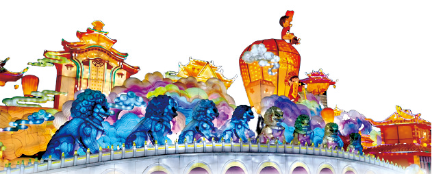 明月映盧溝,層云現(xiàn)宮闕。乙巳年正月十一(2月8日),步入2025年京彩新春彩燈嘉年華(以下簡稱“京彩燈會(huì)”),又行一刻,便見《天宮祈愿》。那用彩燈構(gòu)筑的盧溝橋通向仙山,數(shù)只石獅威嚴(yán)肅穆,鎮(zhèn)守這條神秘通道。遠(yuǎn)處仙山可居住著抗日英靈?想來觀此盛世,他們亦會(huì)感到欣慰。