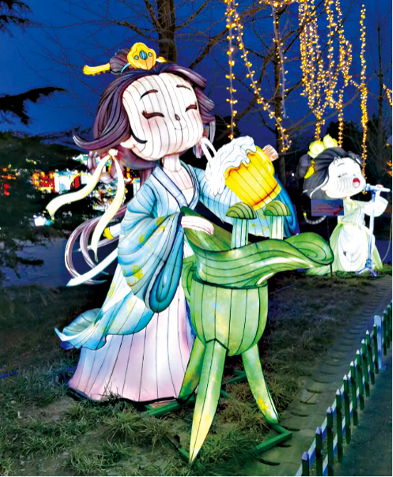 筆者在《福祿壽喜——金榜題名》附近休息時(shí),忽聽到一家長問道,“看這幾個(gè)字——金榜題名,你知道什么含義嗎”?孩子答,“就是成績考得好”。家長從科舉制度講起:金榜是殿試之后揭曉進(jìn)士名字的榜單,因用黃紙墨書故稱“金榜”……見此家長聚精會(huì)神地翻閱手機(jī),應(yīng)是特意搜索了相關(guān)歷史故事。普及歷史后,孩子站在彩燈前,家長拍照寄語孩子祝福與期望。之后陸續(xù)有數(shù)十個(gè)家庭前來打卡拍照,多是在彩燈前詢問孩子未來展望,亦有家長講解歷史,還有家長現(xiàn)場布置作業(yè),要求孩子逛完京彩燈會(huì)后回家寫寒假作文。想來孩子們在作文中,會(huì)寫下與父母游園的點(diǎn)點(diǎn)滴滴,在未來也會(huì)成一段難忘的回憶。