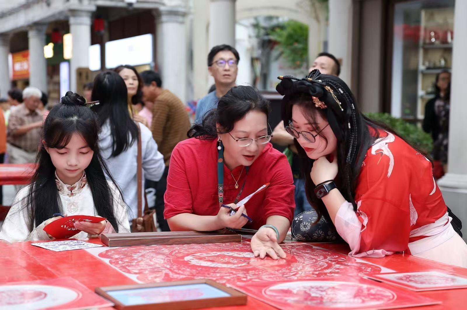魏惠君深知,剪紙不僅是傳統(tǒng)技藝,更是地方文化的瑰寶。多年來(lái),她不僅在潮陽(yáng)文化館公益藝術(shù)培訓(xùn)班進(jìn)行授課,帶動(dòng)中小學(xué)生學(xué)習(xí)剪紙技藝,還走進(jìn)學(xué)校、社區(qū),舉辦剪紙講座和體驗(yàn)活動(dòng),讓更多的年輕人了解和喜愛(ài)這門傳統(tǒng)藝術(shù)。每月她還會(huì)到曠園社區(qū)老年活動(dòng)中心進(jìn)行公益剪紙授課,滿足多年齡段居民對(duì)文化生活的需求。
