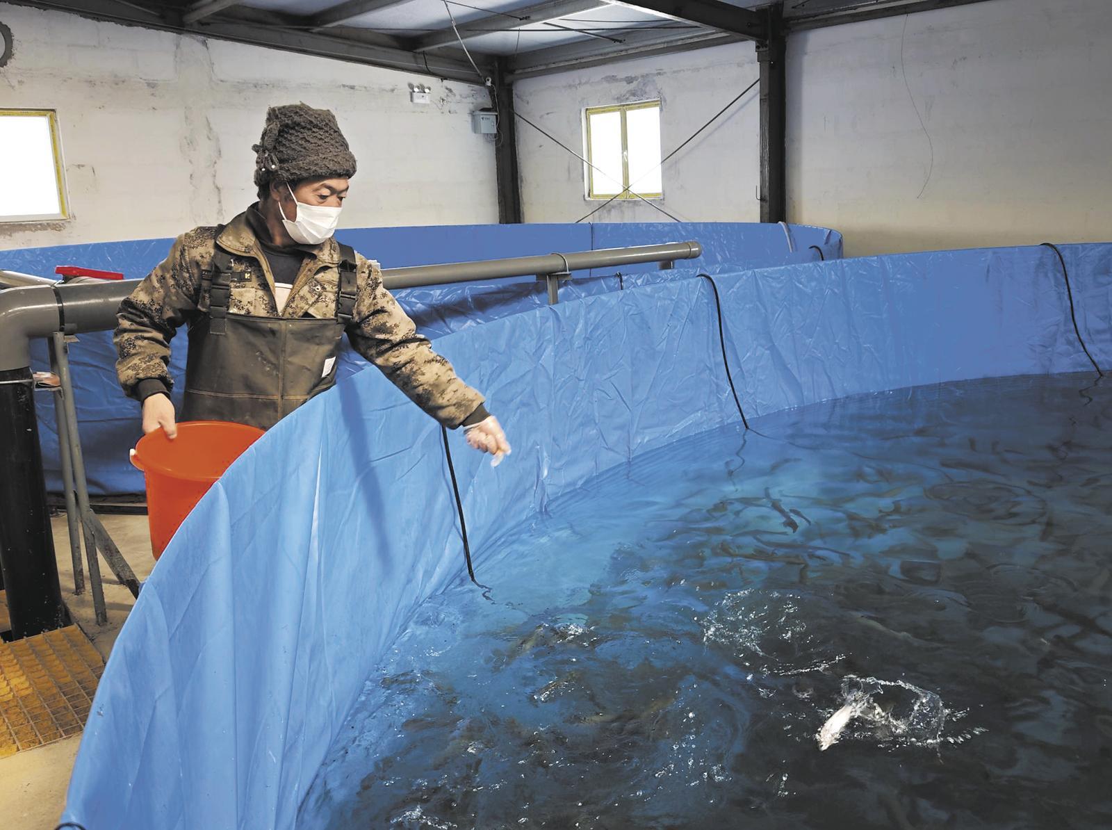 基地負(fù)責(zé)人楊光介紹,目前池子里正茁壯成長(zhǎng)著約2萬(wàn)尾虹鱒魚(yú),經(jīng)過(guò)近10個(gè)月的精心喂養(yǎng),目前每條重量達(dá)到一斤左右。“預(yù)計(jì)在今年年底,這些魚(yú)將被出售,按照當(dāng)前的市場(chǎng)價(jià)格估算,銷售額達(dá)到300多萬(wàn)元。此外,基地還有5萬(wàn)尾鱸魚(yú),也將在今年6月出售?!?/p>