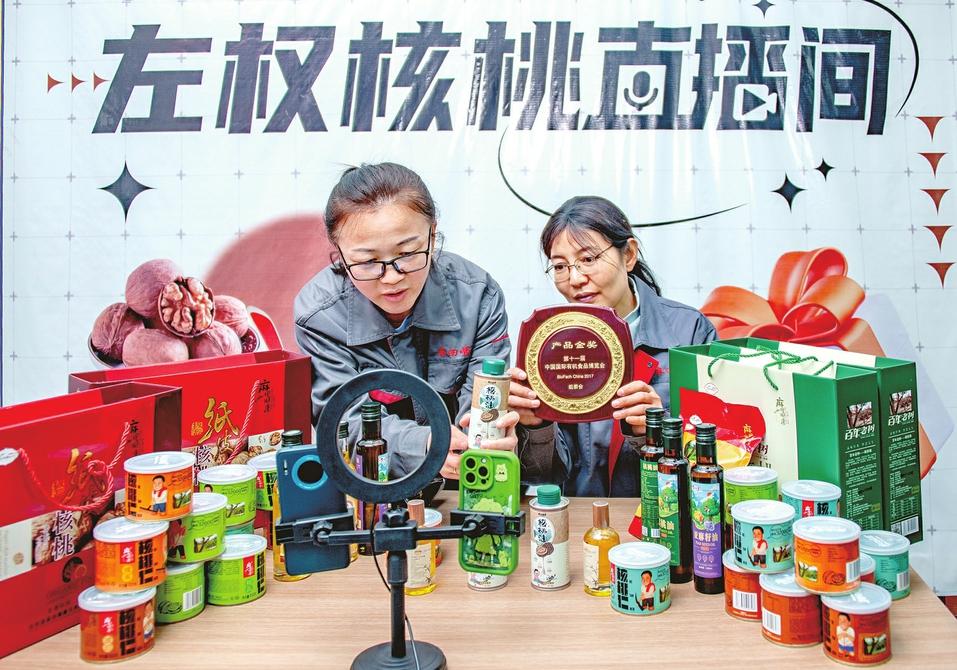 “要想心情好,多往左權(quán)跑,左權(quán)不光是陪伴你春夏秋冬的旅游勝地,也可以是你置辦山鄉(xiāng)好物的‘優(yōu)選庫’?!彪娚讨鞑ミ_人楊麗娜正對著鏡頭熱情介紹,從秀美鄉(xiāng)村到古法工藝再到美妙口感,傾情推薦左權(quán)綿核桃、太行小米、手工釀醋等“匠心農(nóng)品”,直播間熱度持續(xù)攀升。
