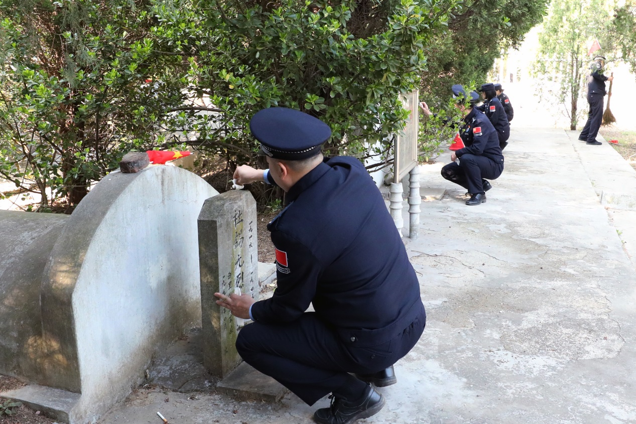 上午9時(shí),參與活動(dòng)的民警職工整齊列隊(duì)于烈士紀(jì)念碑前,對(duì)陵園進(jìn)行清理,擦拭墓碑、清掃落葉,以整潔的環(huán)境表達(dá)對(duì)英烈的哀思與敬意。