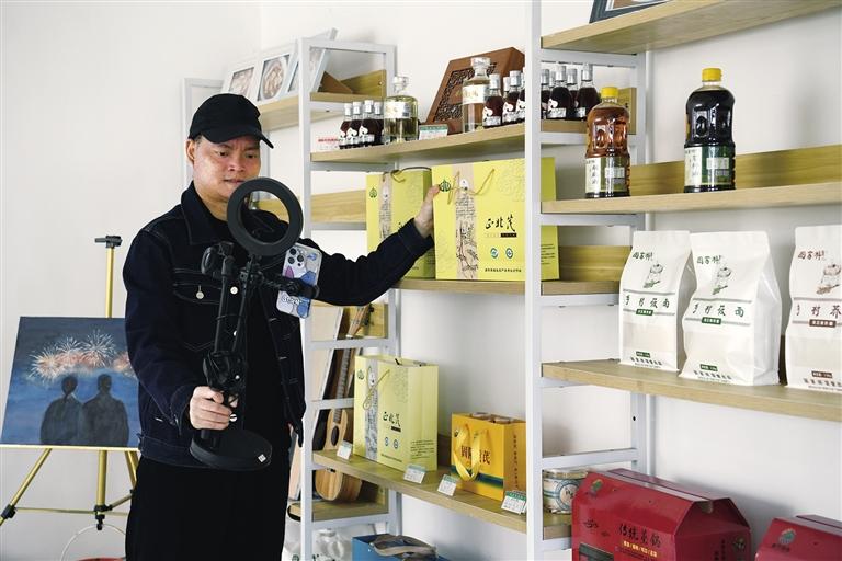 包頭市固陽縣金山鎮(zhèn)青年致富能手楊汶興線上銷售當?shù)靥厣r(nóng)產(chǎn)品。彭海霞 攝