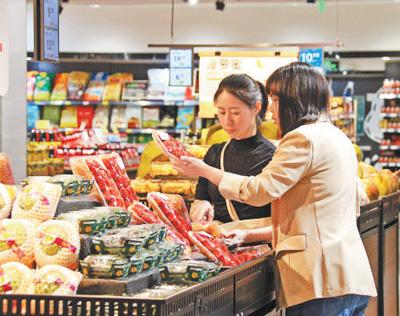 消費(fèi)者在匯星廣場(chǎng)的超市采購(gòu)。唐巍 攝