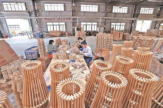 在融安縣融嘉工藝有限公司生產(chǎn)車間,工人們正加緊生產(chǎn)一批即將發(fā)往海外的竹制工藝品。“今年一季度,企業(yè)實(shí)現(xiàn)出口訂單約1500萬元,同比增長31%。”公司經(jīng)理林劍峰介紹。