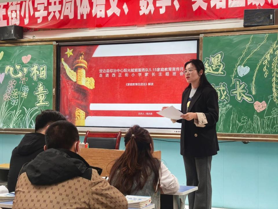 為深化未成年人心理健康教育,健全家庭、學(xué)校、社會(huì)協(xié)同育人體系,近日,陜西省榆林市定邊縣綜治中心陽光賦能服務(wù)隊(duì)聯(lián)合定邊縣人民檢察院未成年人檢察部,走進(jìn)西正街小學(xué)開展“陽光賦能 家校共育”家庭教育宣傳月主題班會(huì)活動(dòng),60余名師生代表、家長及工作人員參與其中。