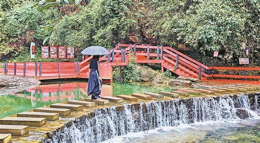景區(qū)內(nèi)一條貫穿整個(gè)景區(qū)的紅色棧道格外引人注目。水錦順莊景區(qū)總監(jiān)助理韋炳佳介紹:“特意架高的棧道是為了避開植被使其不被破壞,采用環(huán)保木材建設(shè),雖增加成本卻最大限度保護(hù)生態(tài)。”