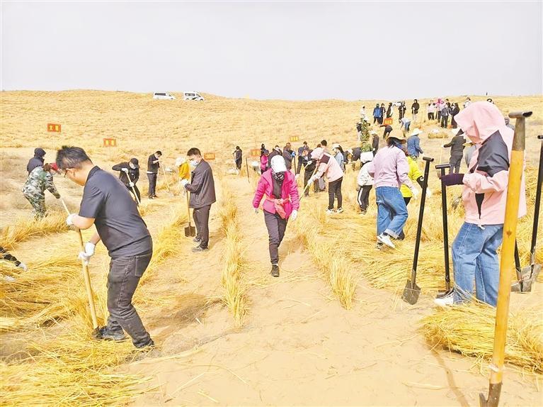 協(xié)同治理的突破,激活了多元力量的參與。平羅縣依托林長制搭建的協(xié)同平臺,將各級林長責任區(qū)與治沙任務(wù)精準對接,通過建立黨建帶林建工作機制,引進社會資本參與后期養(yǎng)護管理?!?月25日,金融系統(tǒng)的研學團隊來這和我們一起扎草方格、種樹苗,大家干得熱火朝天!此外,青年志愿者隊伍也絡(luò)繹不絕……”王建保說,“林長制就像一根‘指揮棒’,將各方力量擰成一股繩,讓治沙從‘單打獨斗’升級為全社會協(xié)同作戰(zhàn)?!?/p>