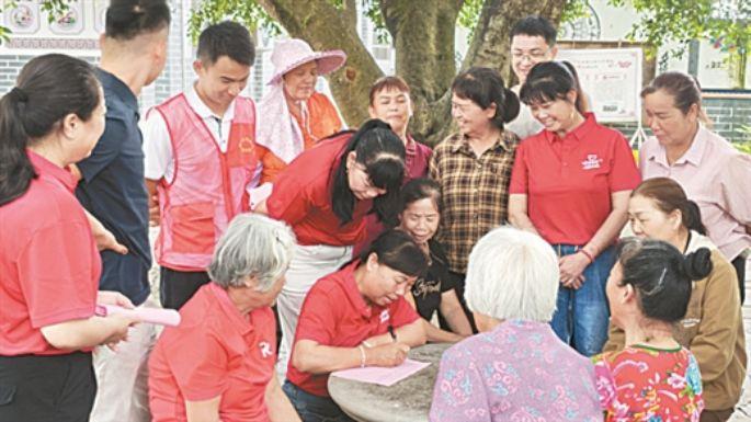 義務(wù)紅娘深入群眾摸排登記單身青年信息。覃仁玲 攝