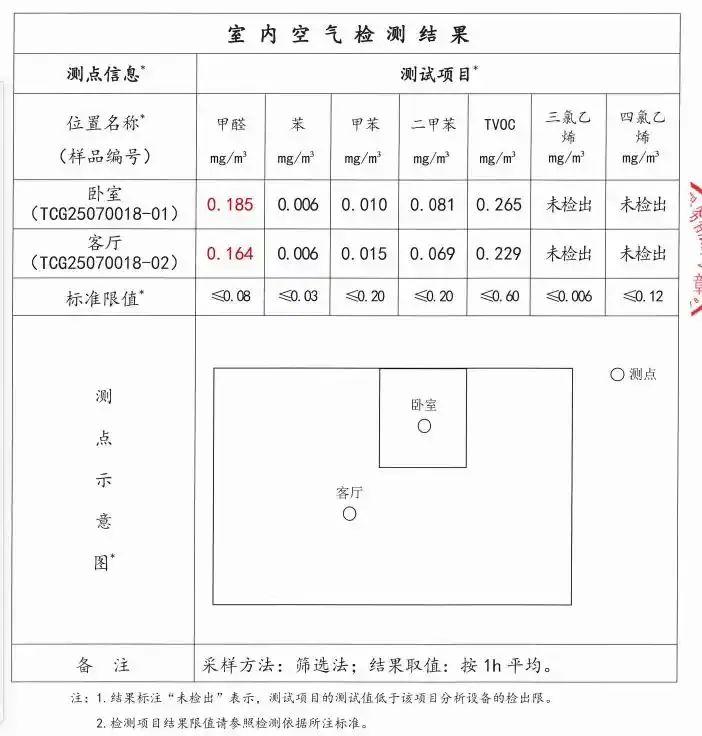 房屋的甲醛檢測(cè)結(jié)果