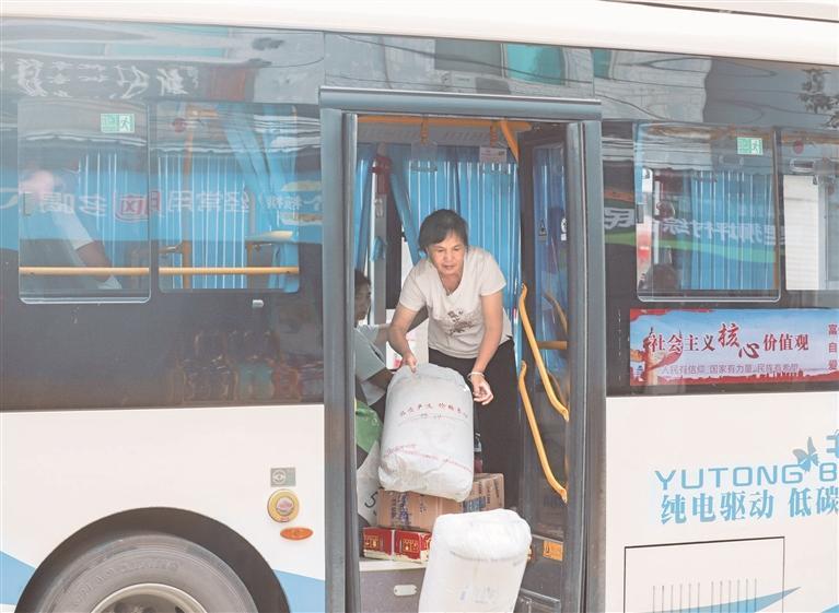 下午3點半,一輛往返于玉屏城區(qū)與新店鎮(zhèn)丙溪村的公交車輛緩緩駛?cè)敕峙渲行摹q{駛員熟練地將大小不一的快遞包裹清點裝車。很快,這些包裹便與乘客一同,踏上了“乘公交下鄉(xiāng)”的行程。