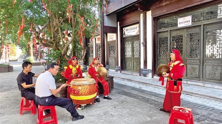 8月1日9時,陜西省安康市平利縣長安鎮(zhèn)文共體分中心前的廣場上鑼鼓震天,熱鬧非凡。平利縣安之美文化傳媒有限公司負(fù)責(zé)人劉海和帶領(lǐng)幾名村民排練花鼓戲,贏得現(xiàn)場觀眾陣陣掌聲。