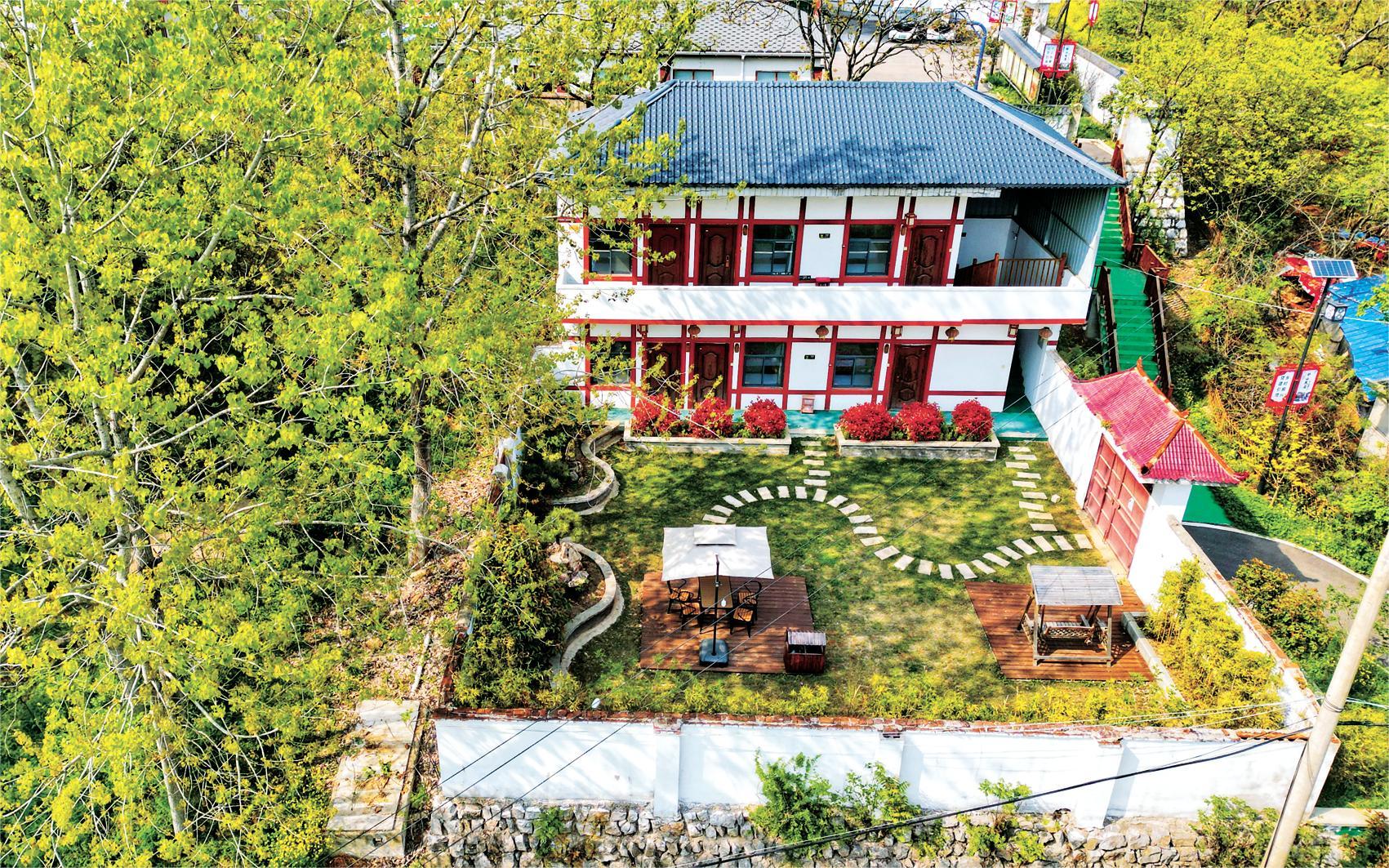 綠樹(shù)掩映中的妙山村民宿(淮南市八公山區(qū)委宣傳部供圖)