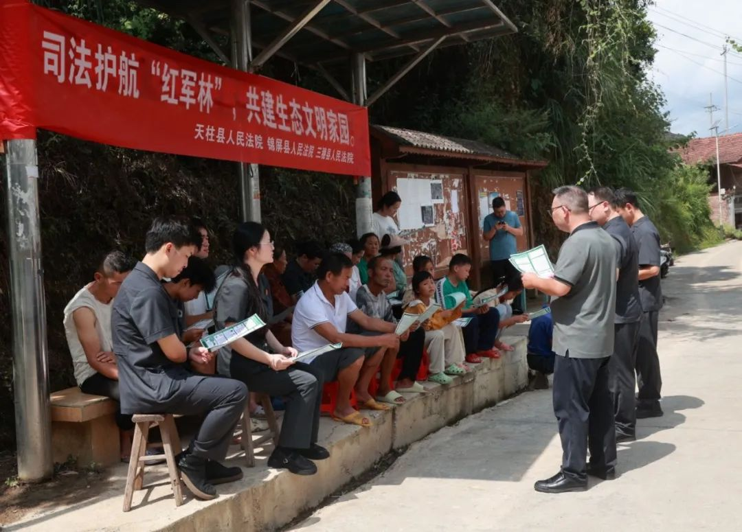 古樹名木是森林資源的瑰寶,更是歷史與文化的鮮活載體。8月13日,貴州省天柱縣人民法院牽頭聯(lián)合三穗、錦屏兩縣法院,組織黨員干警赴錦屏縣河口鄉(xiāng)塘東村“紅軍林”,共同開展“保護古樹名木,弘揚生態(tài)文明”主題黨日活動,以黨建“紅”引領生態(tài)“綠”,將黨組織戰(zhàn)斗力轉化為生態(tài)保護的強勁動力,讓紅色基因成為驅動高質量發(fā)展的“綠色引擎”。
