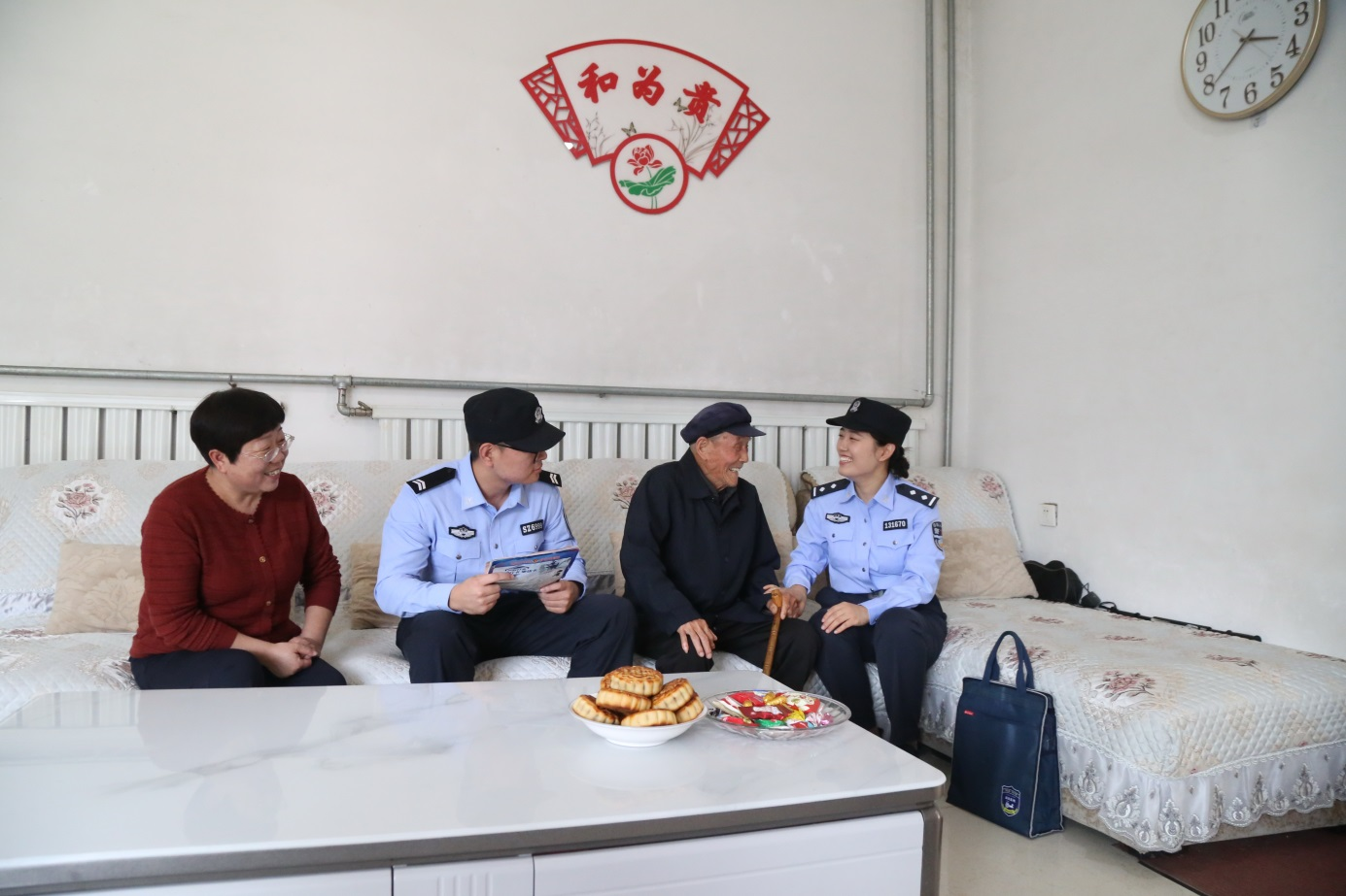 她們是百姓身邊的貼心人。國(guó)慶期間,民警們紛紛走近百姓、融入百姓,將祝福和安全送上門(mén)。10月1日下午,社區(qū)民警來(lái)到九旬老人屈爺爺家中,熱活著嘮起家常?!白罱眢w怎么樣”“是否有什么難事需要解決”……民警一邊耐心詢問(wèn),一邊認(rèn)真記錄,老人臉上洋溢著開(kāi)心的笑容。一聲聲親切的節(jié)日問(wèn)候,一次次耐心的安全檢查,讓警民關(guān)系在節(jié)日的互動(dòng)中愈發(fā)溫暖。
