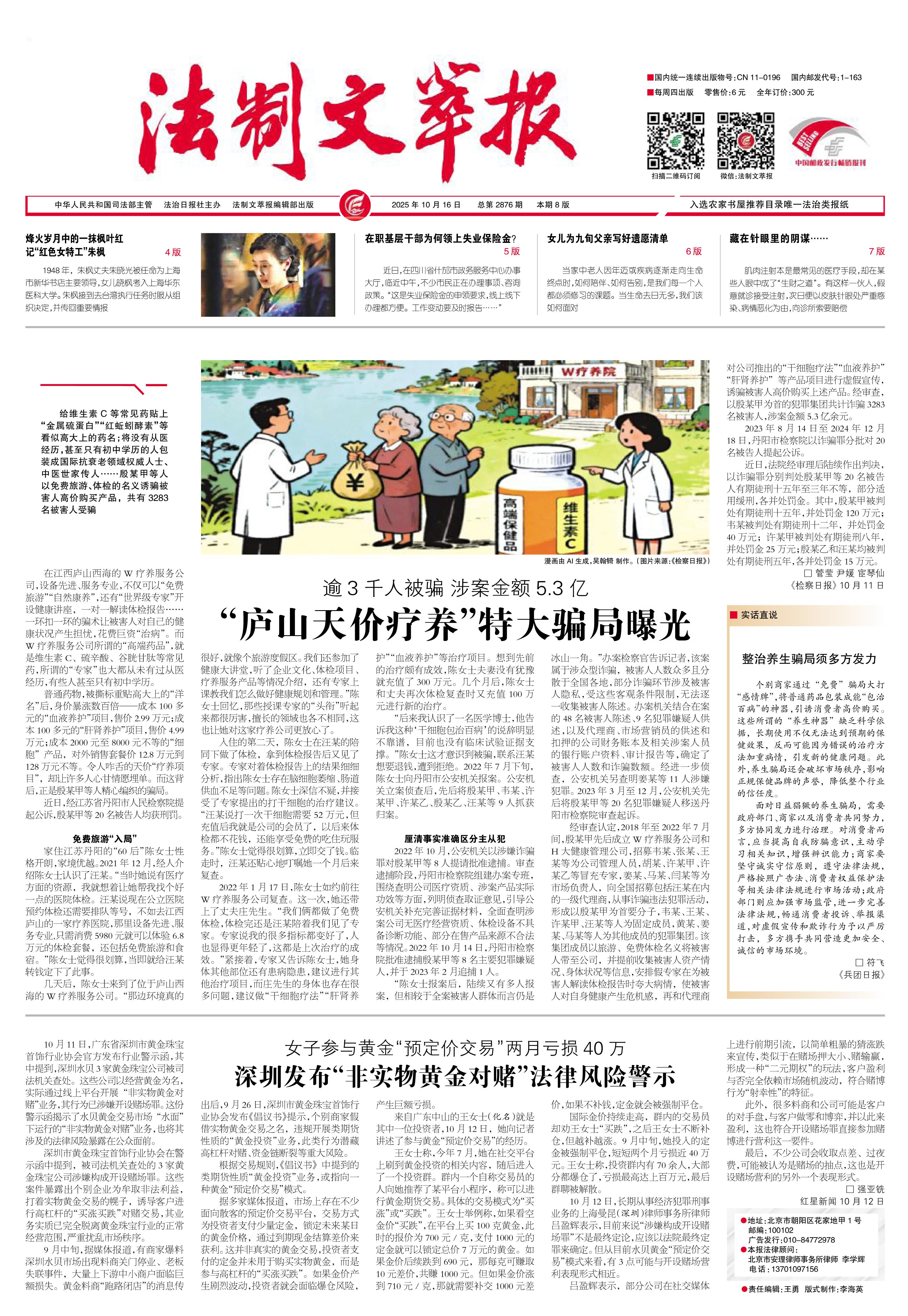 2025年10月16日《法制文萃報(bào)》總第2876期1版