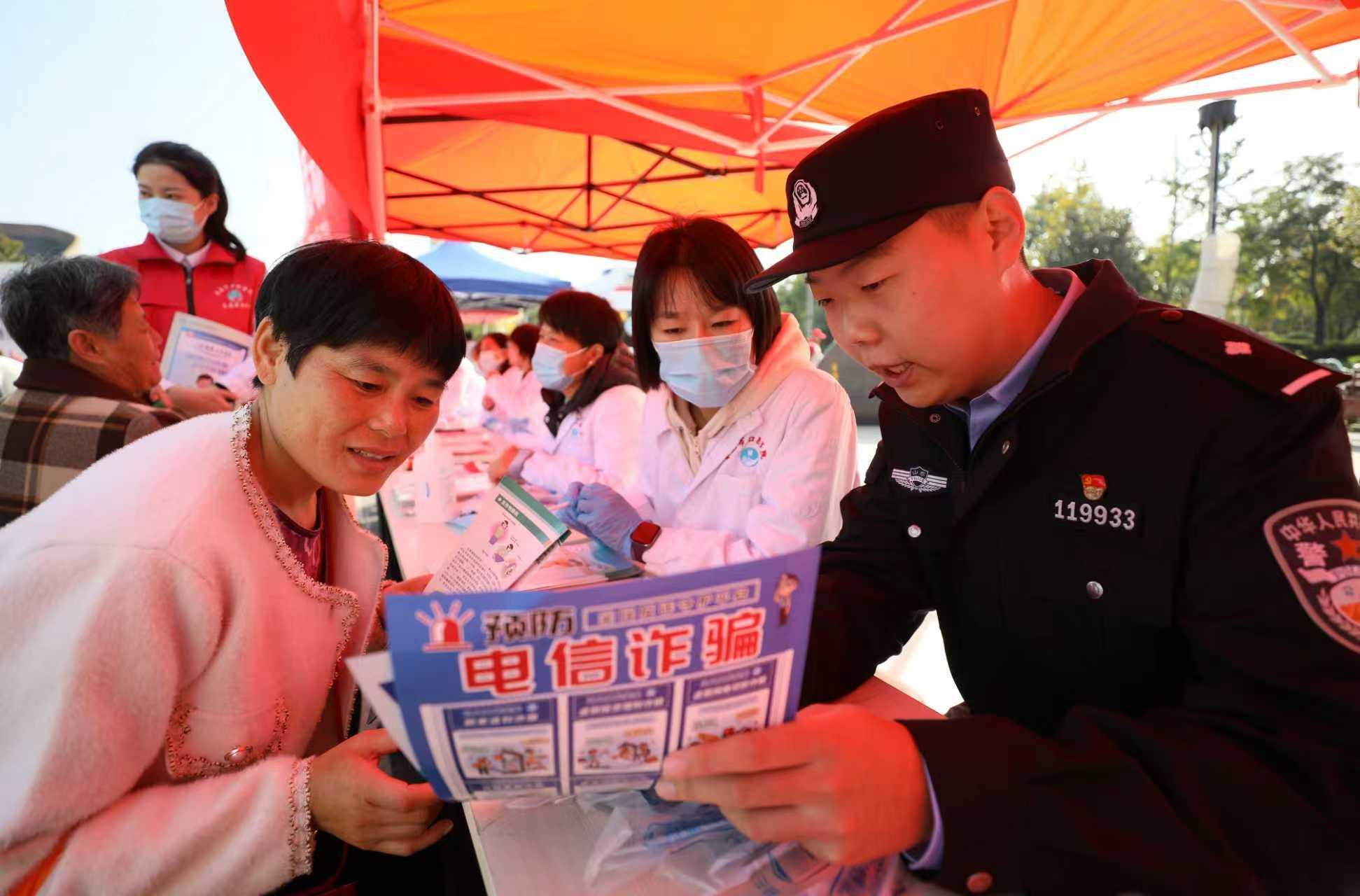 10月29日,在山東省棗莊市臺(tái)兒莊區(qū)興中廣場(chǎng),民警在向前來義診的市民普及防范電信網(wǎng)絡(luò)詐騙知識(shí)。當(dāng)日是農(nóng)歷九月初九,2025年棗莊市暨臺(tái)兒莊區(qū)“敬老月”重陽節(jié)健康義診活動(dòng)在此舉行,在做好為廣大居民義診的同時(shí),臺(tái)兒莊區(qū)衛(wèi)生健康局邀請(qǐng)臺(tái)兒莊公安分局反詐民警,向前來義診的市民發(fā)放防范電信網(wǎng)絡(luò)詐騙宣傳彩頁,普及相關(guān)知識(shí),告訴大家在就醫(yī)就診過程中要切實(shí)提高電信網(wǎng)絡(luò)詐騙防范意識(shí)。(山東省棗莊市公安局臺(tái)兒莊分局 張嚴(yán)新)