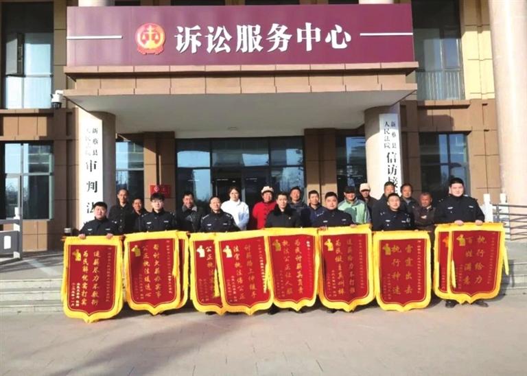 11月26日上午,13名農(nóng)民工代表專程來到新蔡縣人民法院,將十五面錦旗鄭重交到該院執(zhí)行局強(qiáng)制執(zhí)行團(tuán)隊(duì)成員手中。錦旗上的“雷霆出擊、執(zhí)行神速”“執(zhí)行給力、百姓滿意”燙金大字,無聲講述著一個(gè)司法為民、雷霆護(hù)“薪”的暖心故事。
