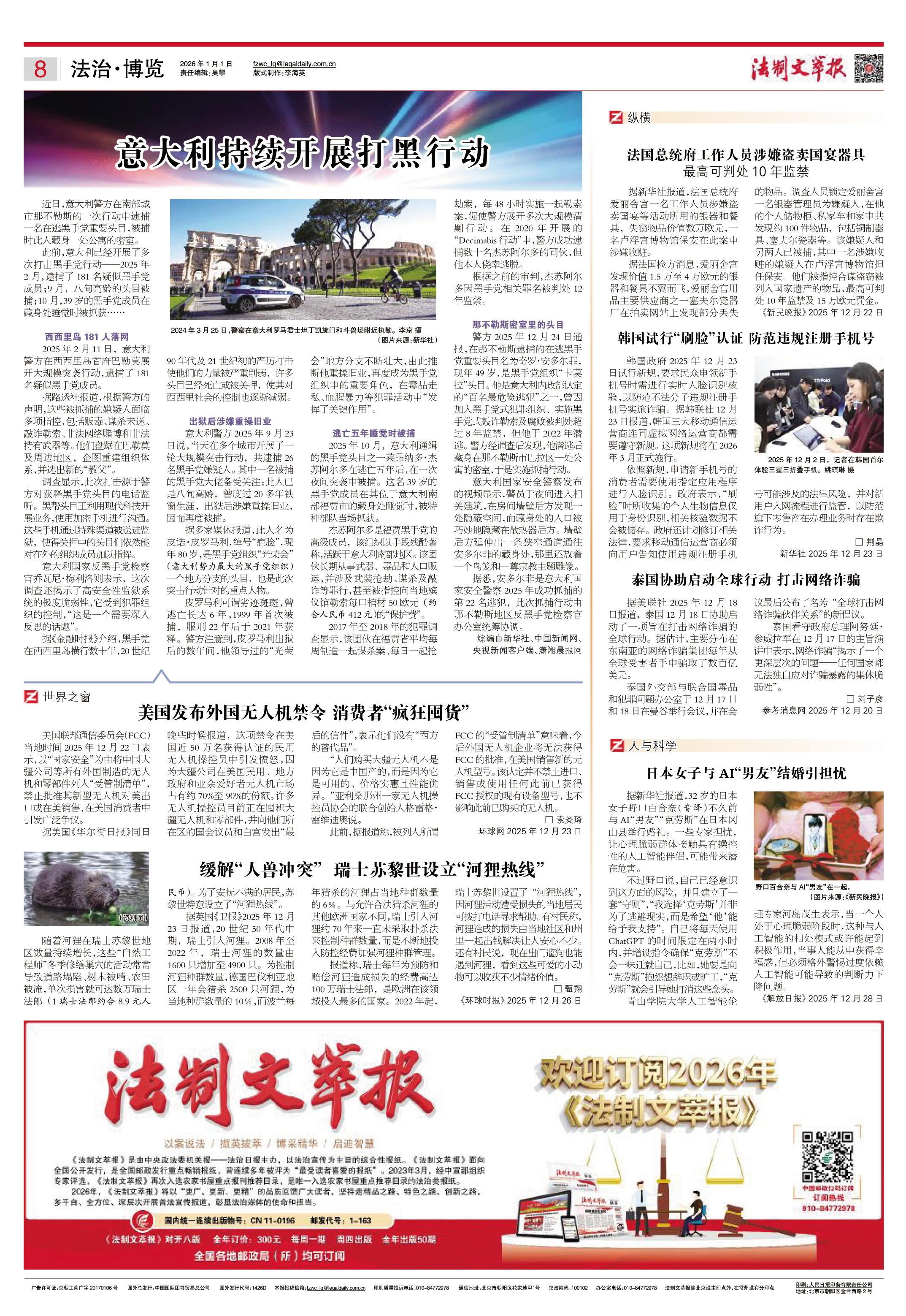 2026年1月1日《法制文萃報》總第2887期8版