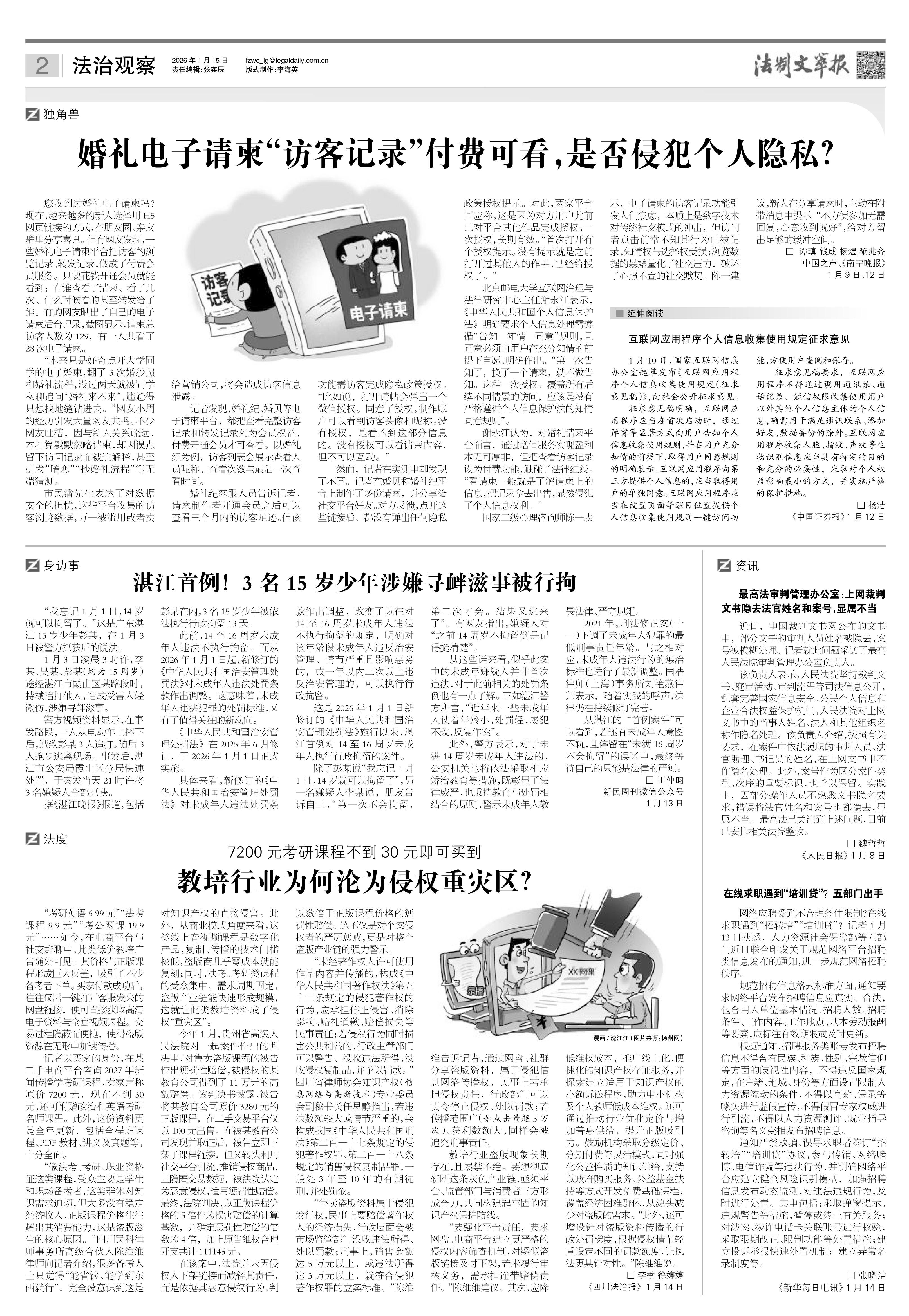2026年1月15日《法制文萃報(bào)》總第2889期2版